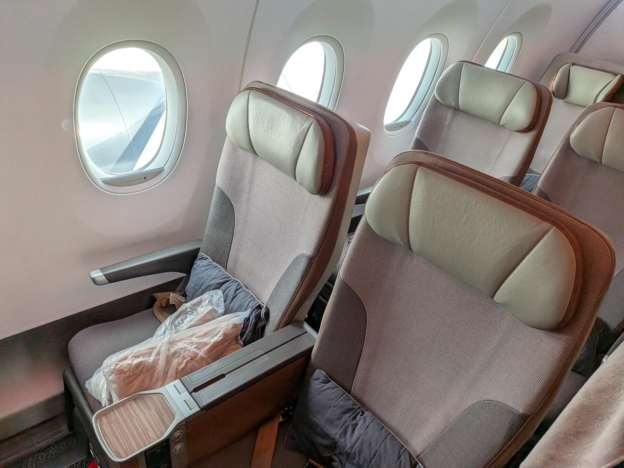 プレミアムエコノミークラスの座席。