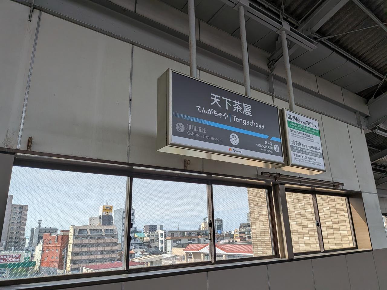 関西空港駅から南海電鉄の空港急行に乗り、駅名標が更新された天下茶屋駅まで帰ってきました。