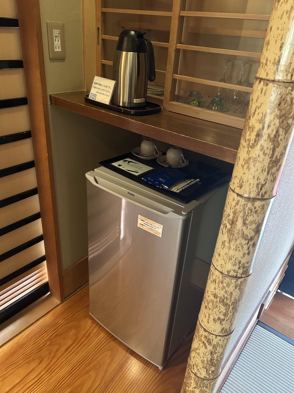 冷蔵庫のポットの中には冷たいお水。