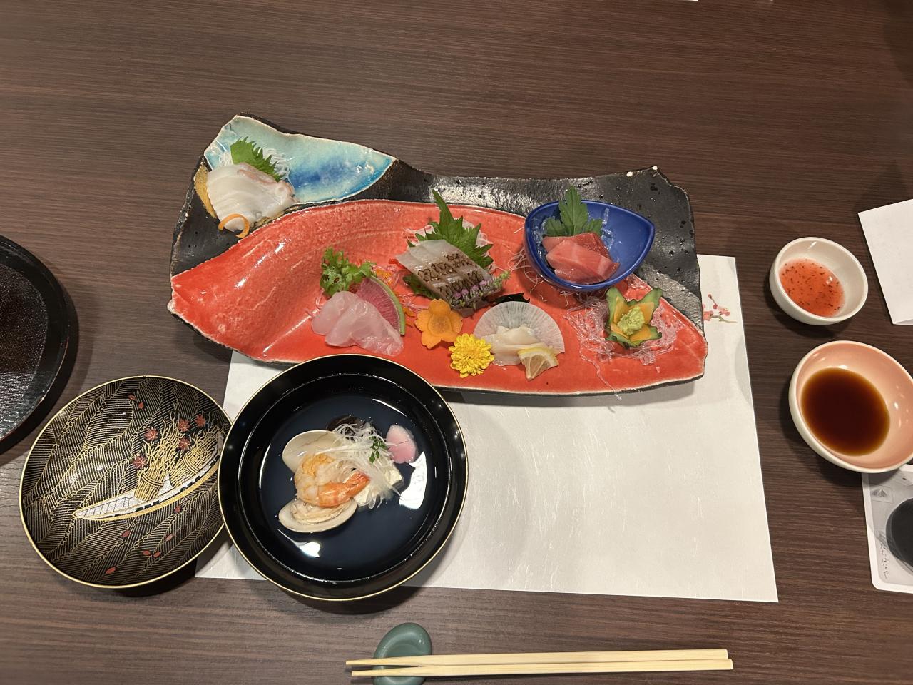 お吸い物のお椀の絵柄がとっても綺麗でした。 -