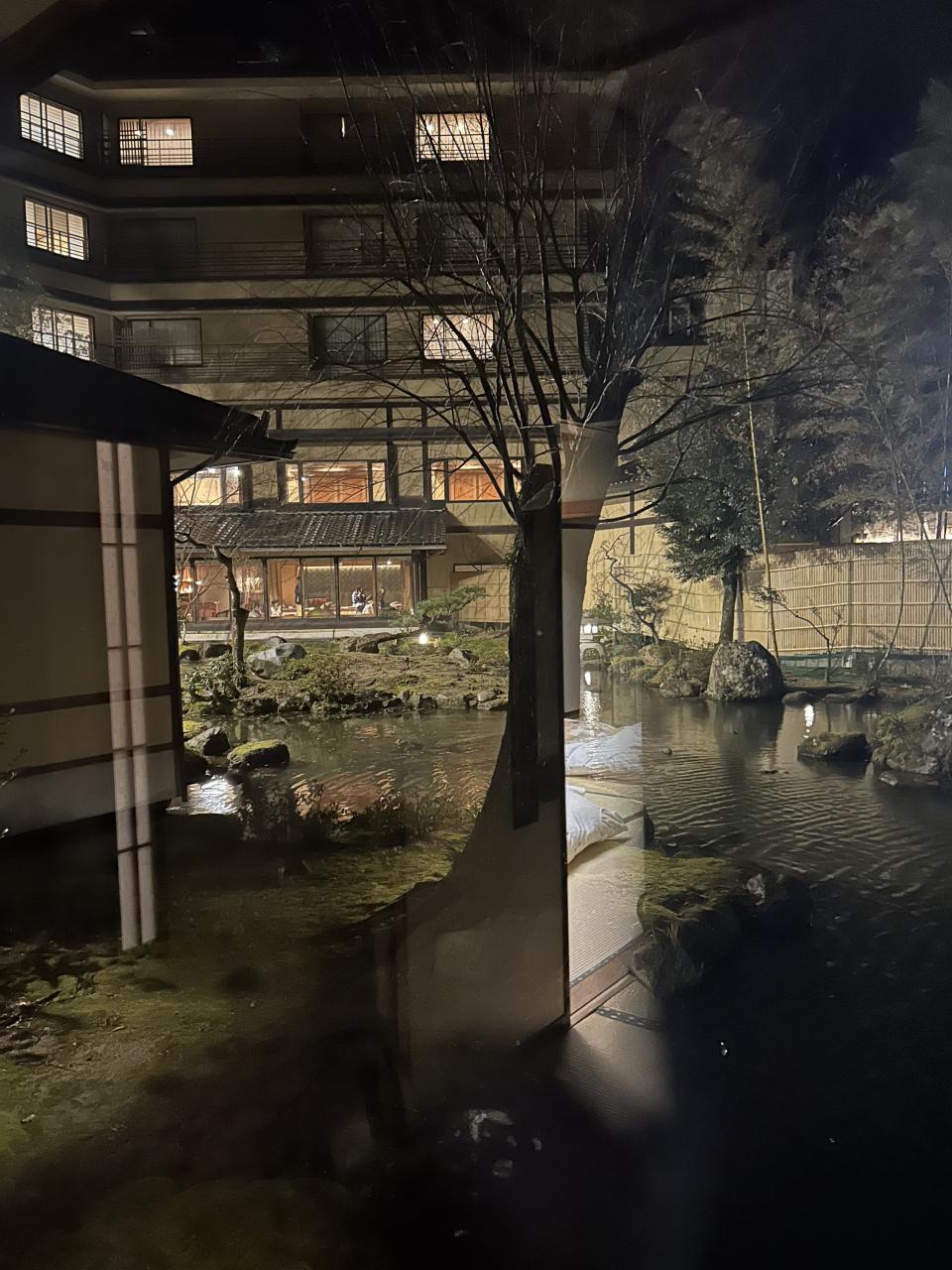 窓の外は池があって鯉が泳いでました。