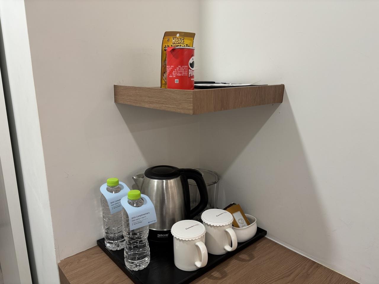 お菓子と冷蔵庫のドリンクは有料 -