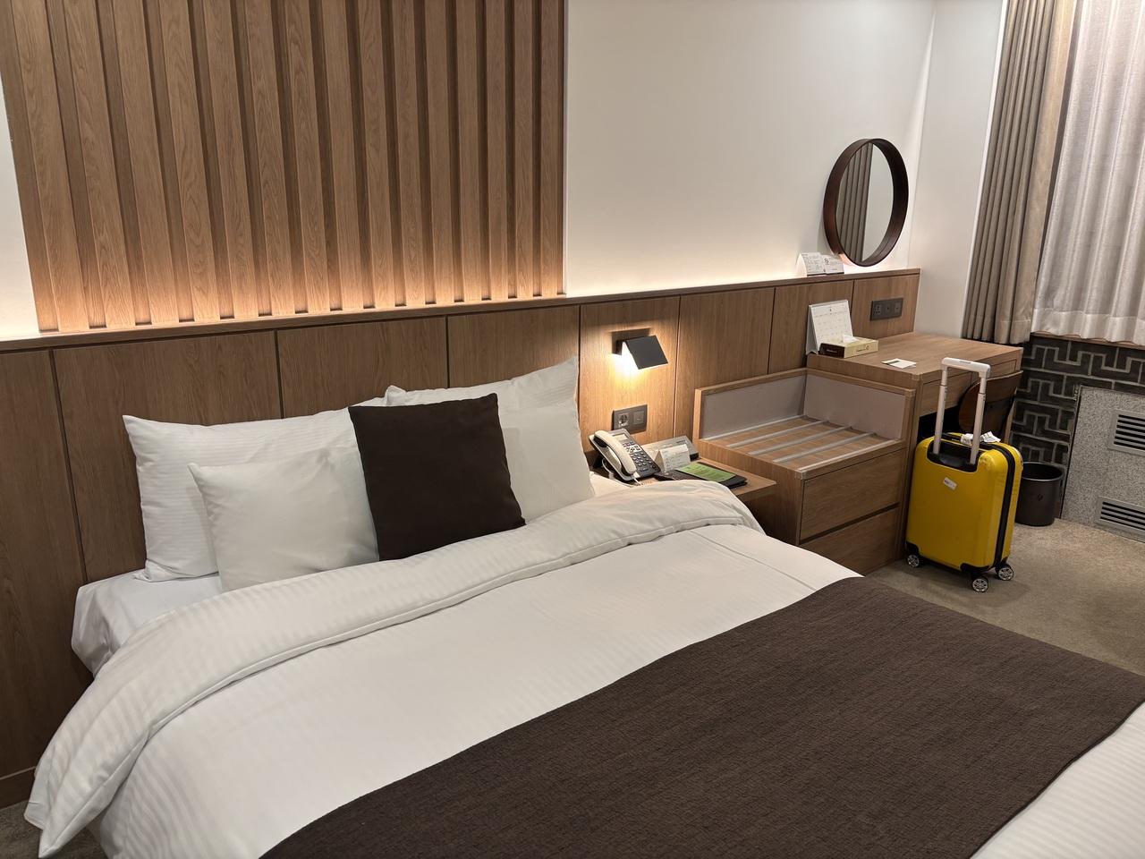 ダブルベッドなので大好きな斜め寝ができます。
