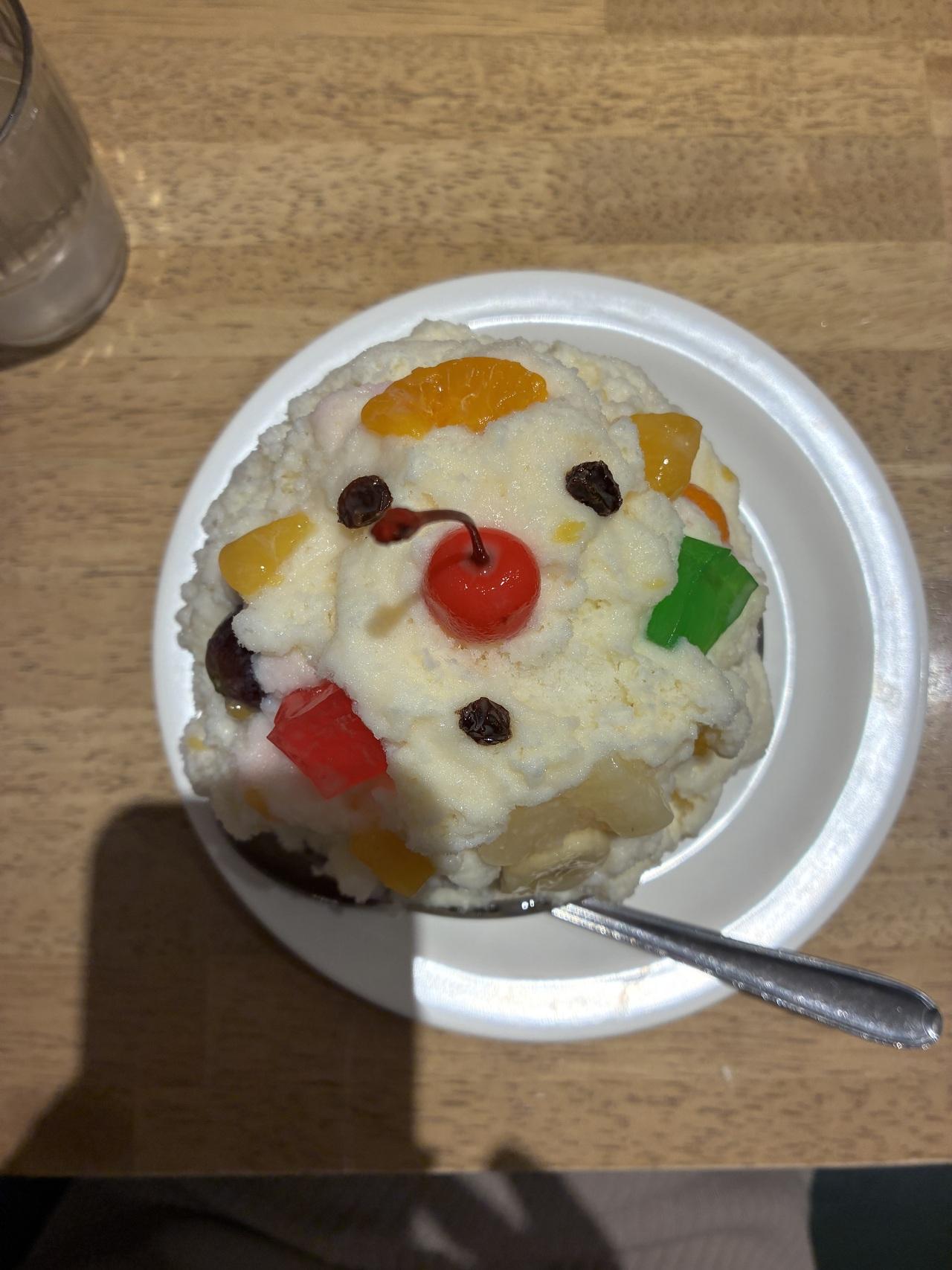 練乳が効いててフルーツたっぷりで美味しい!終わりかけちょっと寒くなったけど!