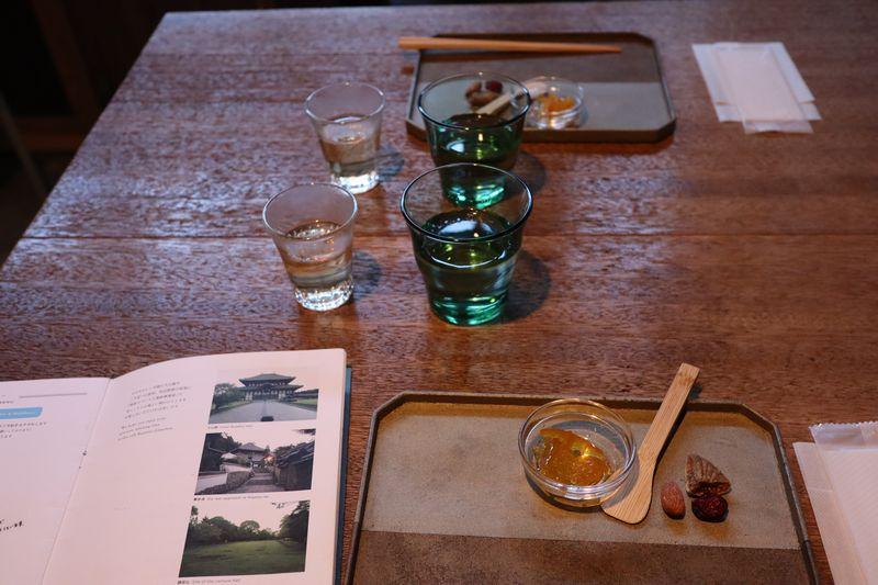 食前のひとくちジュースは暖かい自家製の梅ジュース。