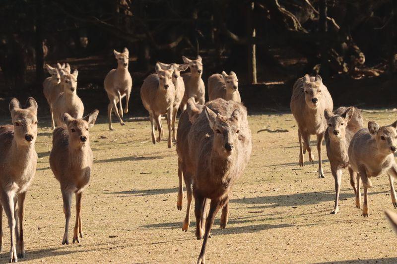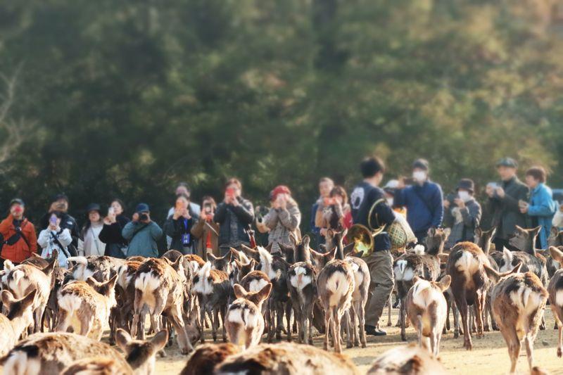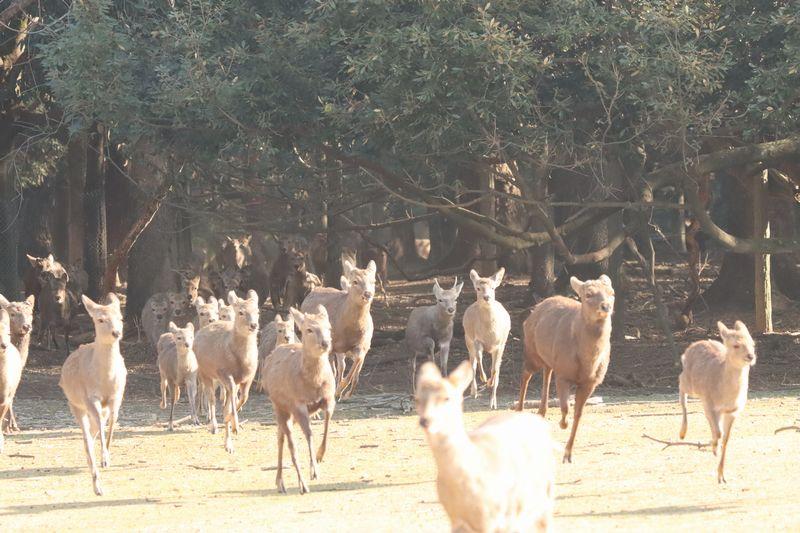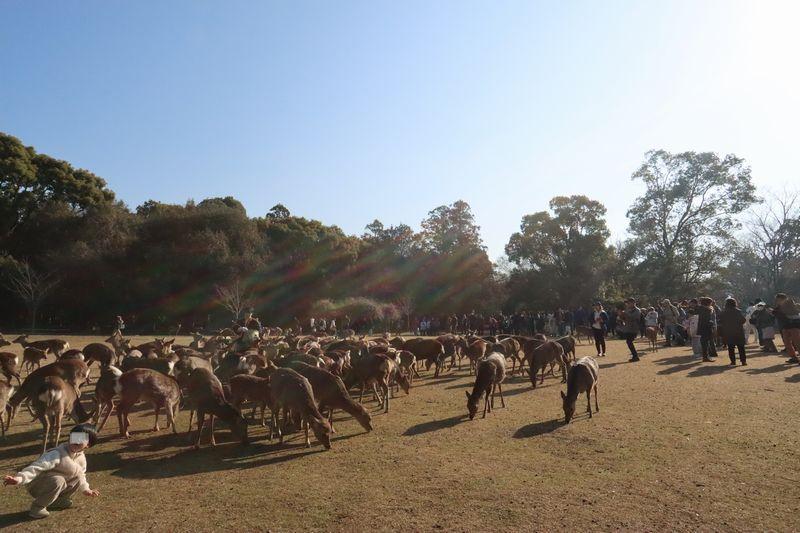 どこからともなく鹿さんたちが集まってきます。 -