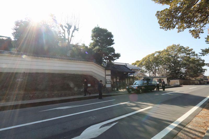 料亭の前でちょうど白無垢の花嫁さんが車に乗り込むところを