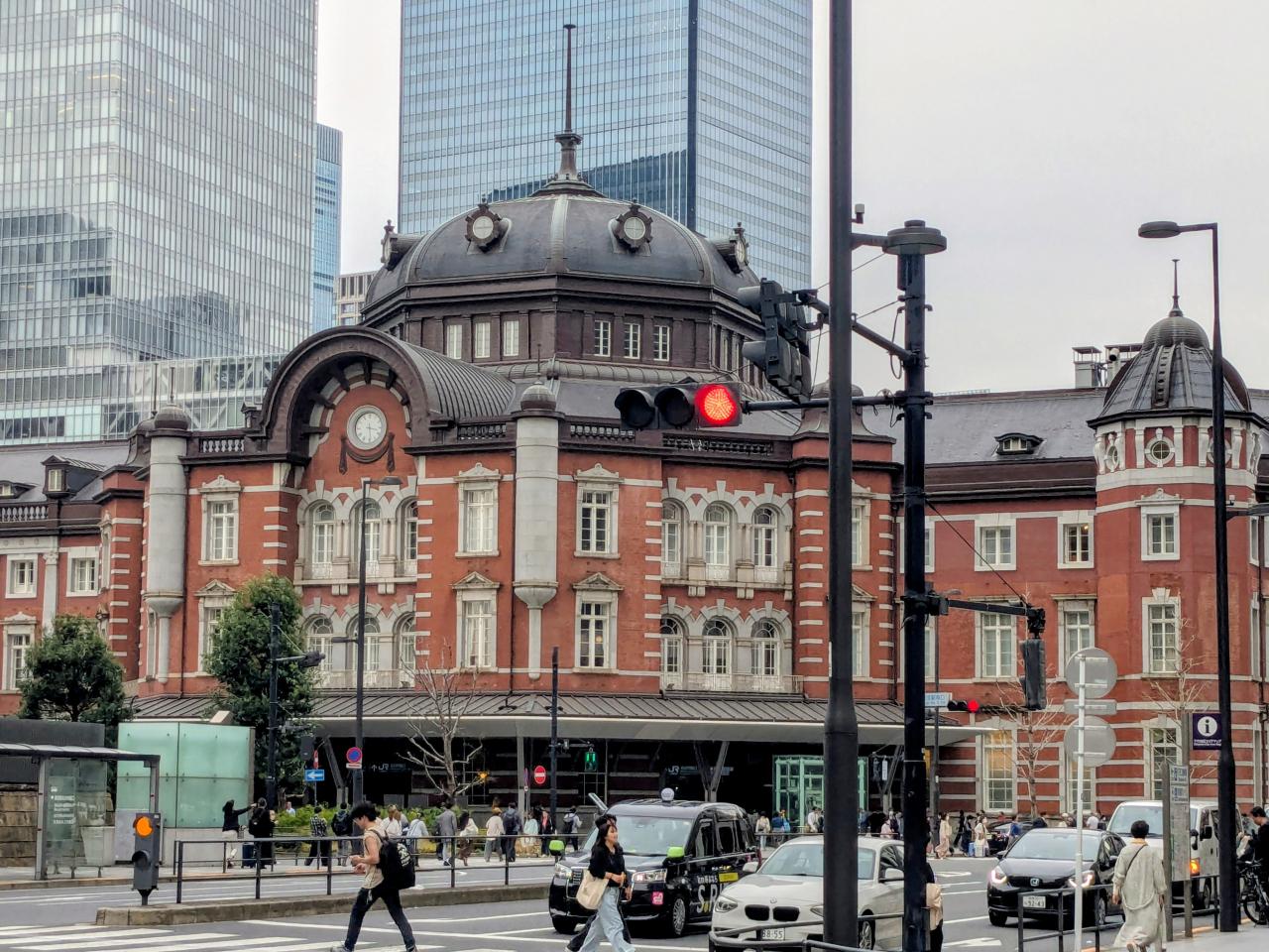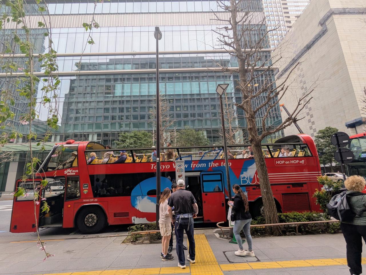 KITTEと丸ビルの間の通りに二階建てバスが停まっていてインバウンダー率高し。