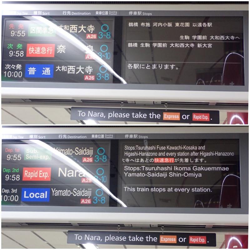 日本語→英語→中国語→韓国語みたいな順で表示している公共交通は近鉄を見習ってほしい。 -