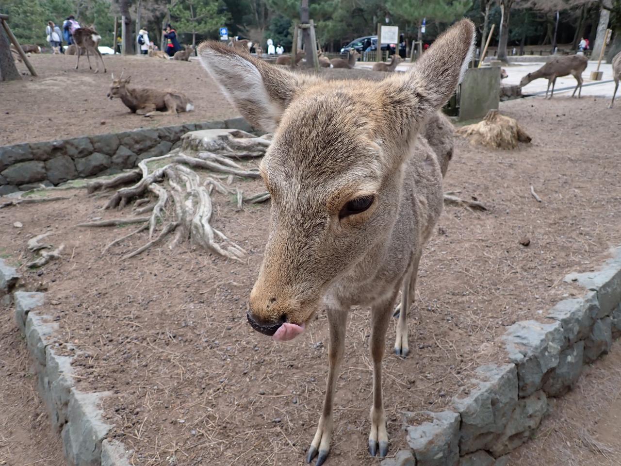 ペロペロしながらおじぎしてきてカワイイけど、鹿せんべいまだ買ってないのよ、ごめんね