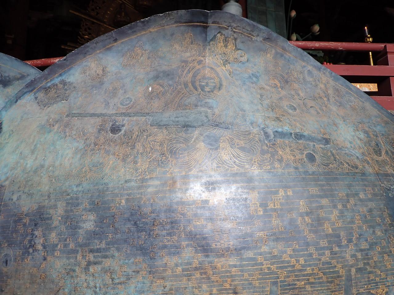 光背(背中の飾り)に彫られた化仏は、大仏が放つ無数の光を無数の仏として表現したもので、「千仏光」というらしい。 -