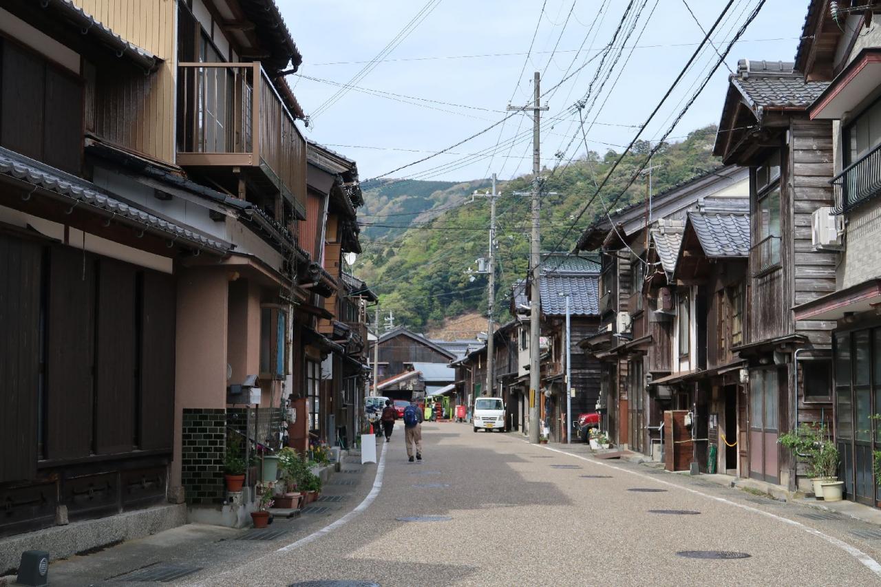 家と家の間から見える海と舟屋を。