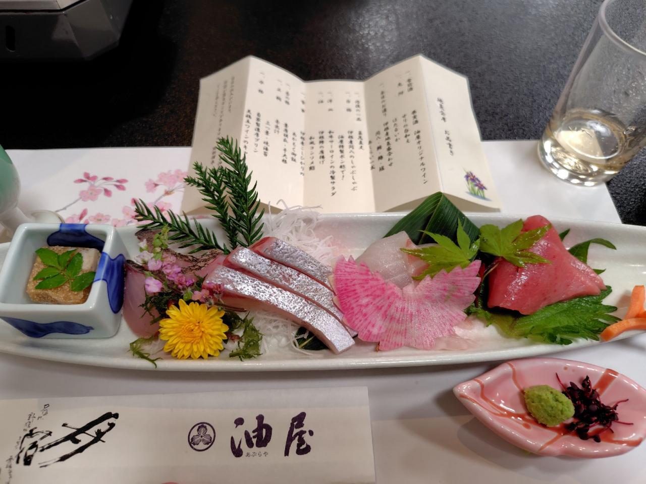 お造りは、伊根産の間八、鮪、鰆、スズキ。