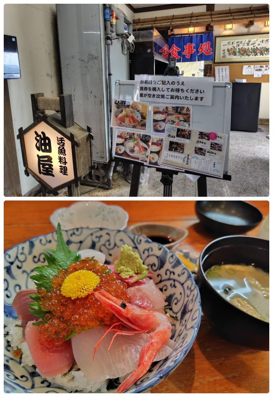 海上タクシーの船長さんに、お昼も道の駅の油屋さんで食べ、今夜宿泊するのも油屋だと話すと、自分達も道の駅の油屋さんには時々食べに行くんですよと。