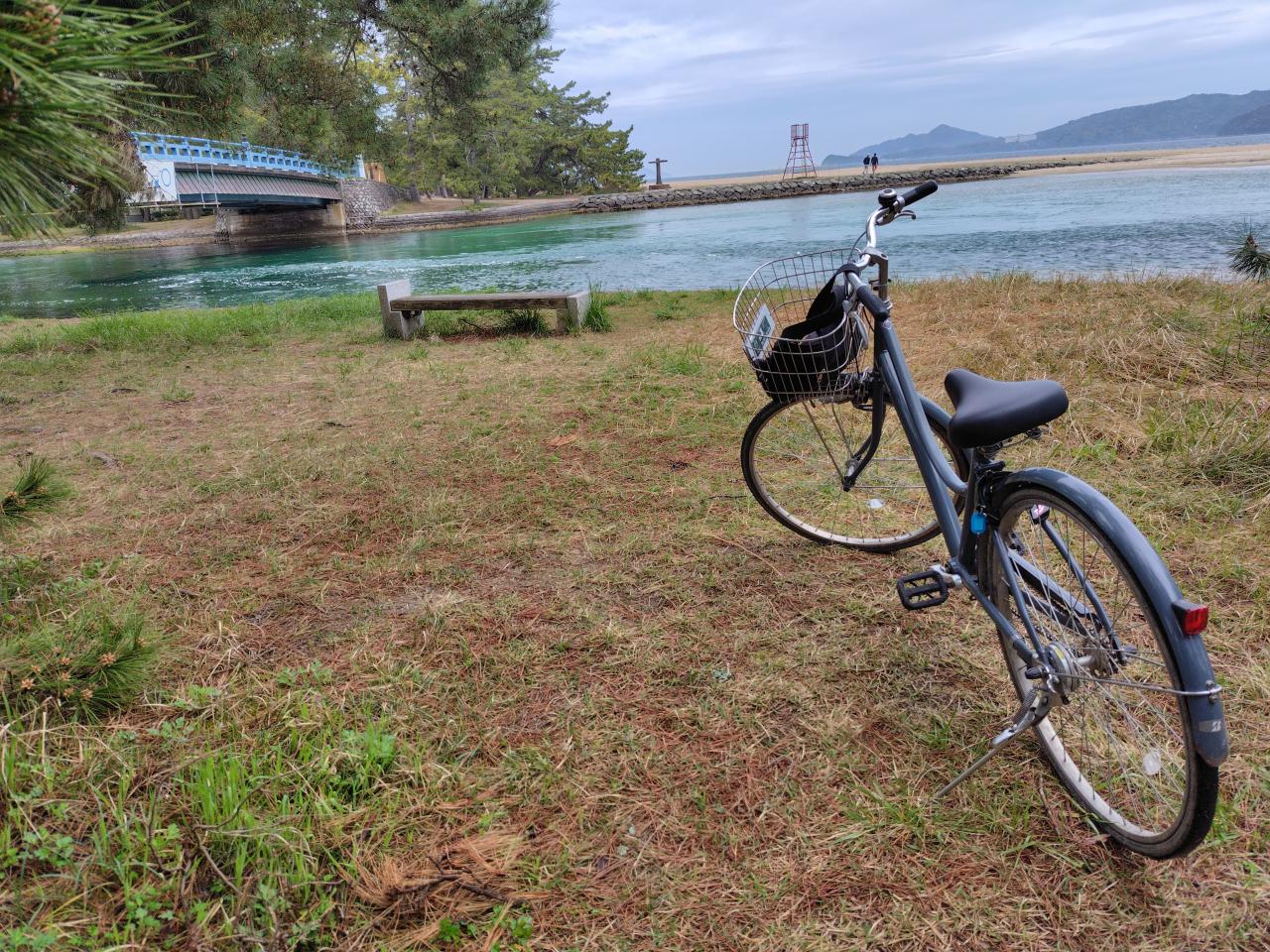 歩いて天橋立の途中まで歩こうと考えていましたが、ちょうど雨が止んでいたので、レンタサイクルで向こうの端まで往復することにしました。