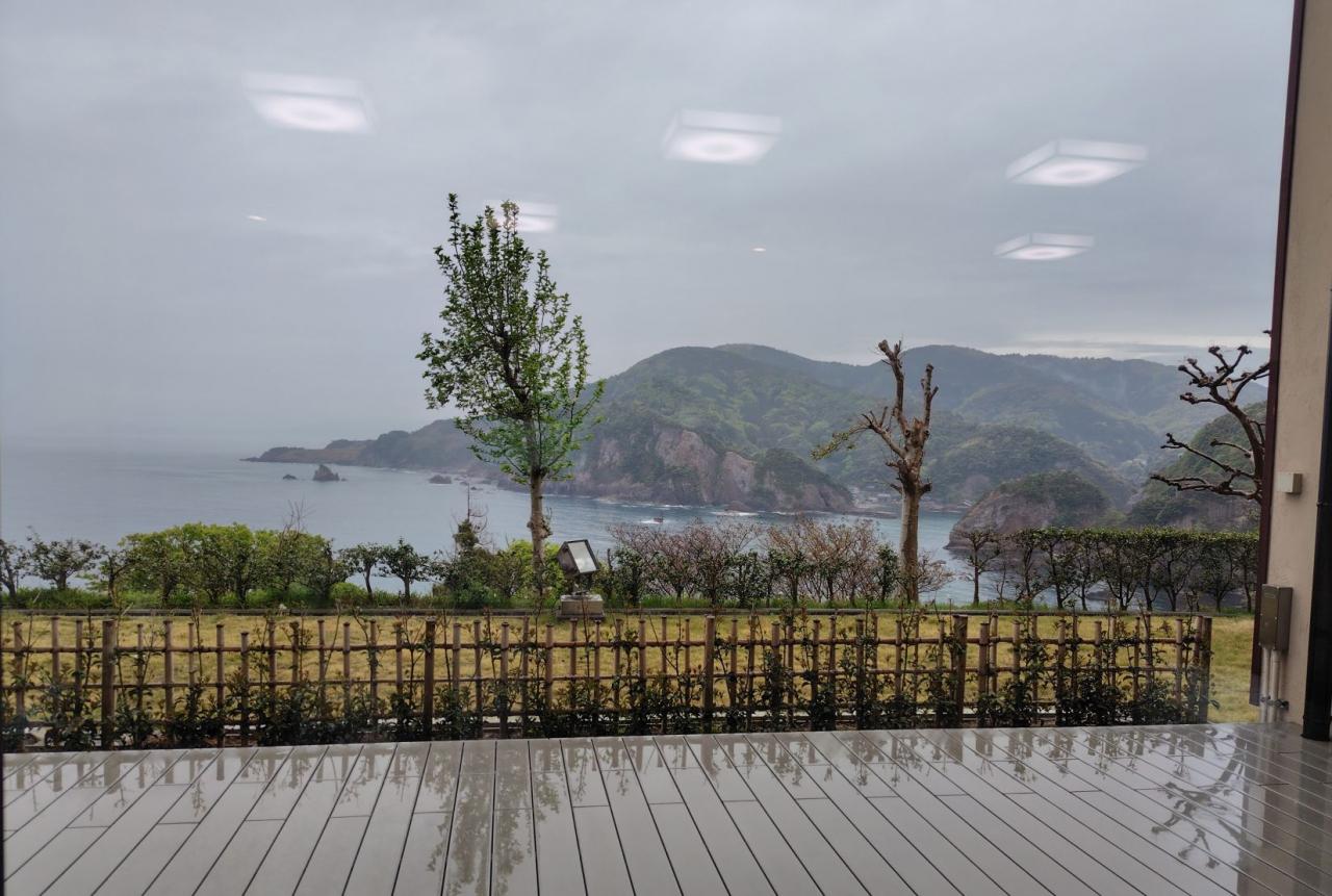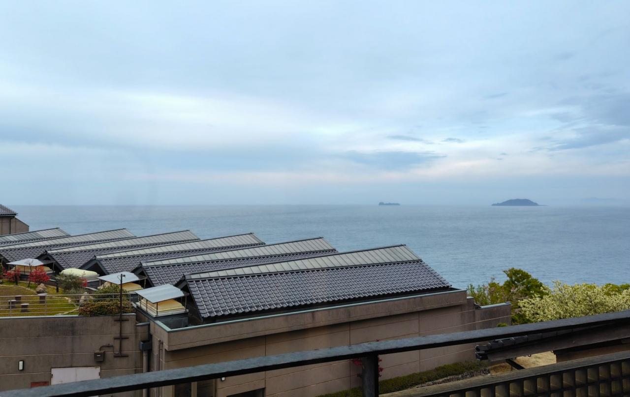 窓からはお隣の別亭の屋根越しに海が見えました。
