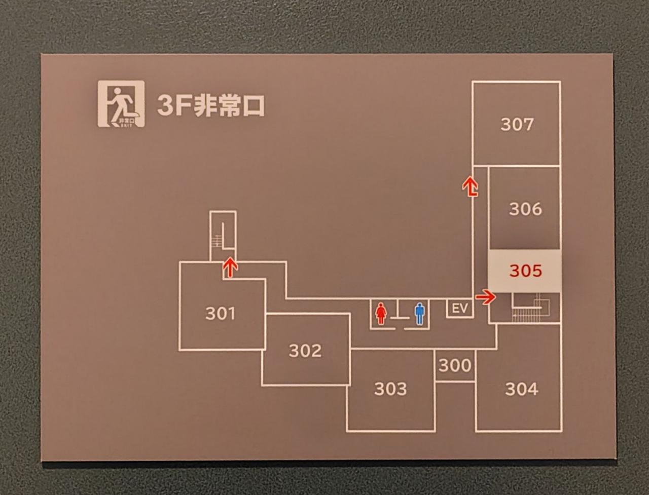 非常口の案内を見たら、3Fの他の部屋は倍以上の広さ。