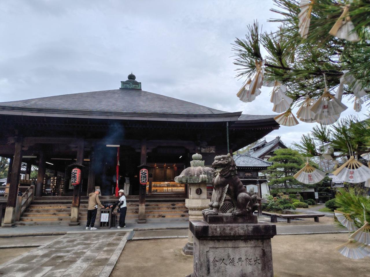 松に結ばれた扇子のおみくじが珍しい。 -