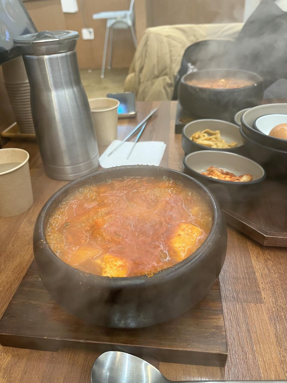 色々な種類のスンドゥブチゲがあって迷いましたが、熟成キムチチゲにしました。