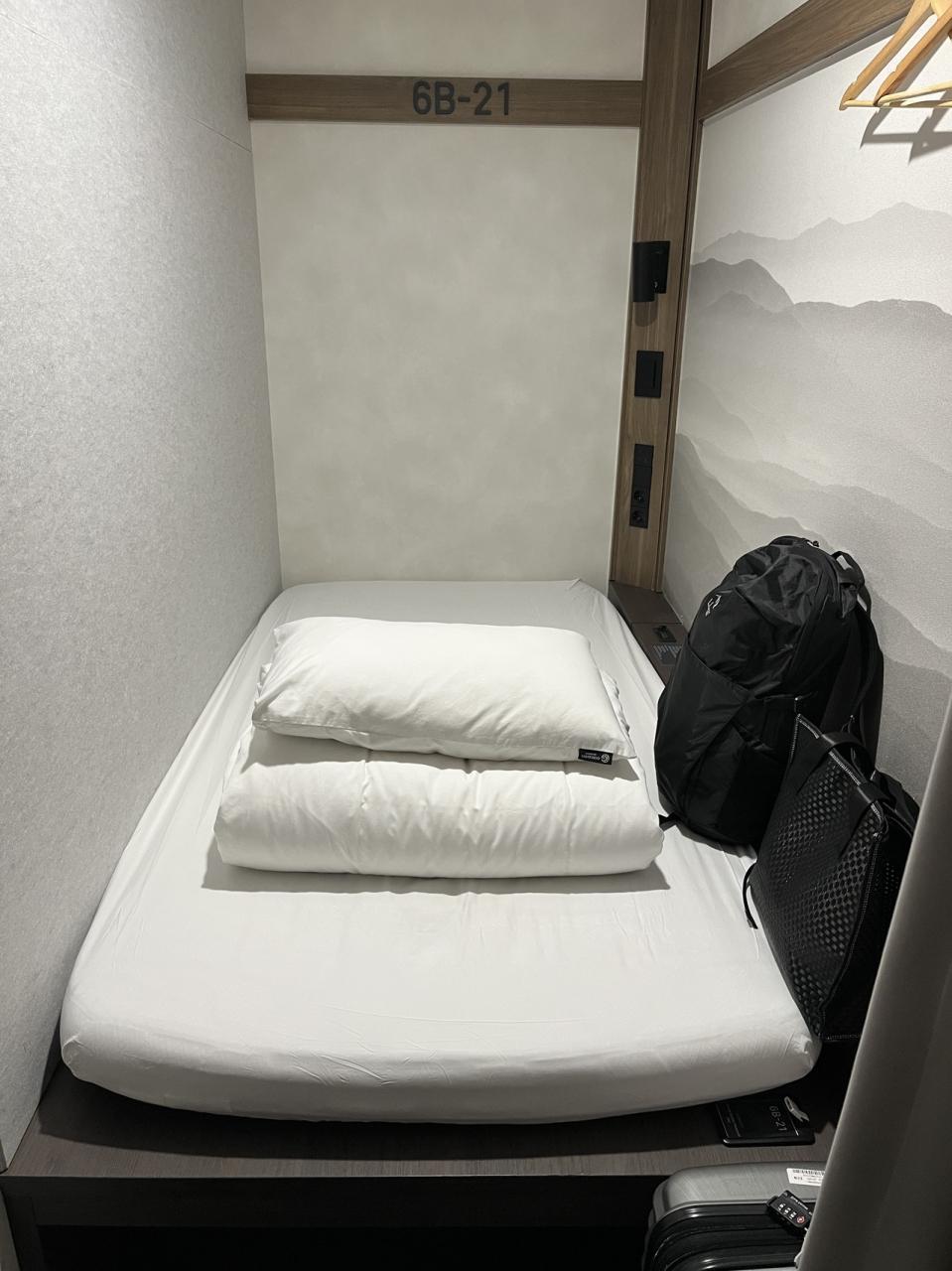 もう、ほんと寝るだけのスペース。それは良いのだけれど、周りが静かすぎて、荷物整理にもかなり気を遣う。