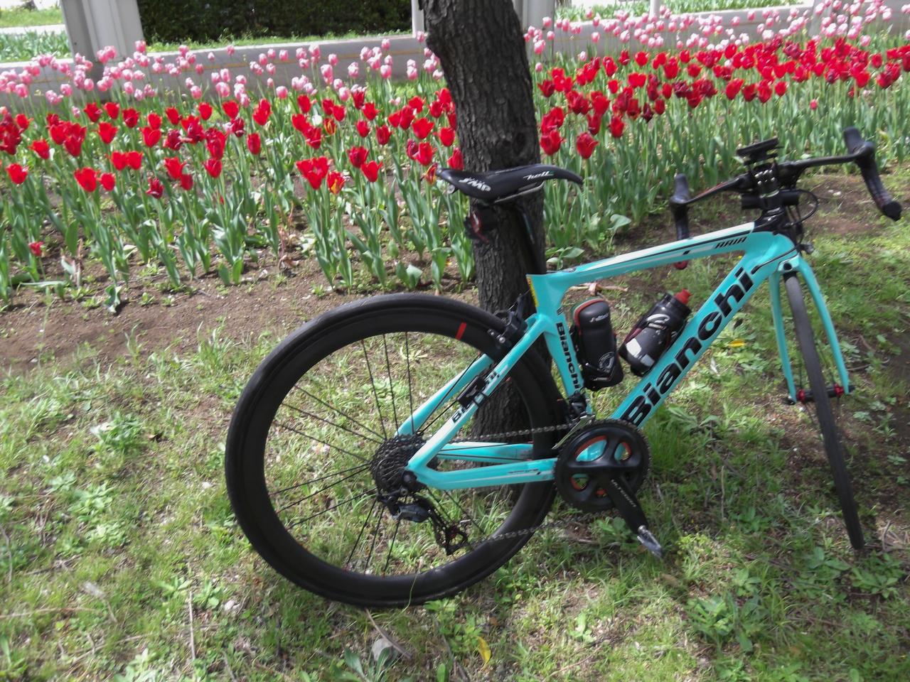 駅前からビッグサイトの間にチューリップの花壇があって。