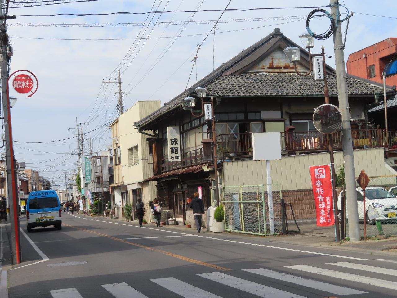 道路向かいの、右の建物は「山車会館」。左の建物は、理容店と八百屋さん。