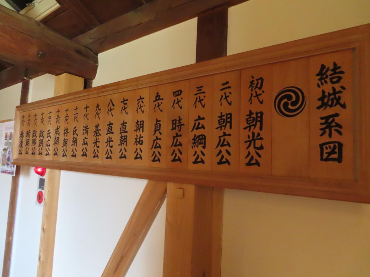 城下町結城の歴史は鎌倉時代まで遡るとのこと。約400年間にわたって統治した結城家の系図が掲げられ、