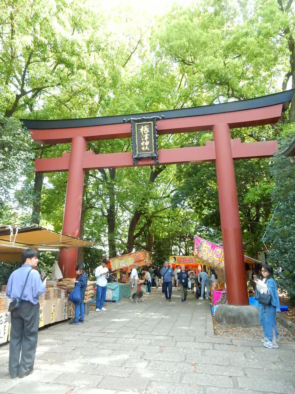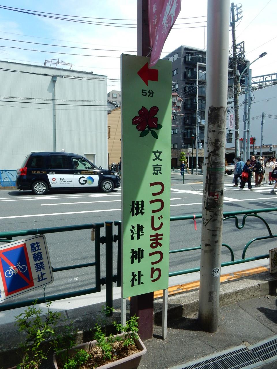 地下鉄・東京メトロ千代田線の「根津駅」で降り、道路へ出る。 根津神社まで、歩いて5分位ですかね---!