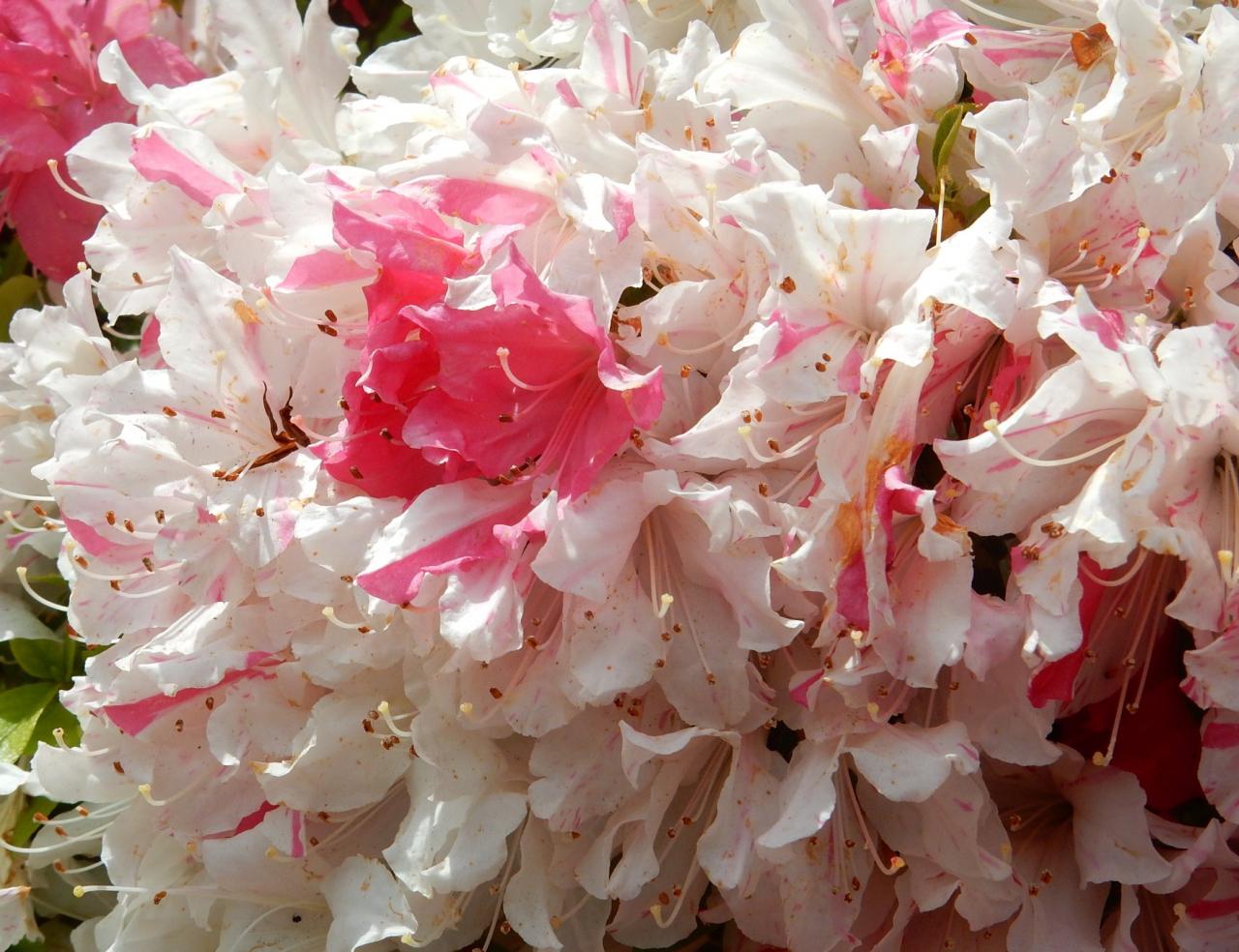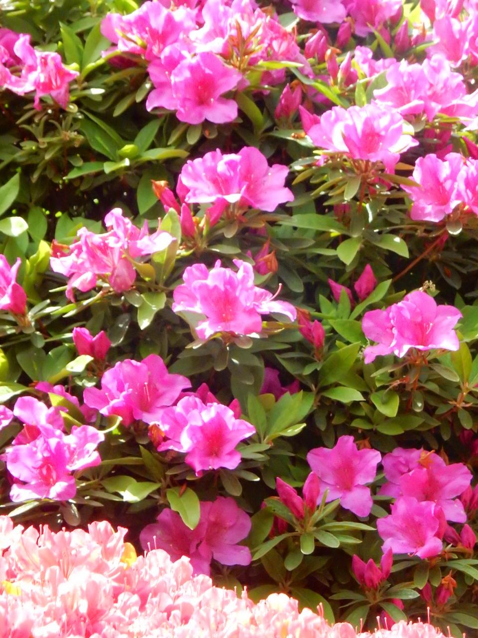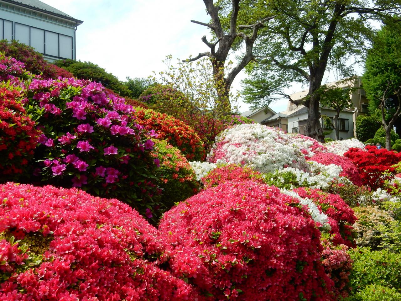 「ツツジの花色は赤、ピンク、白、オレンジ、紫、黄色、青、緑など多彩で、品種によって色や花の大きさが異なります。」 -