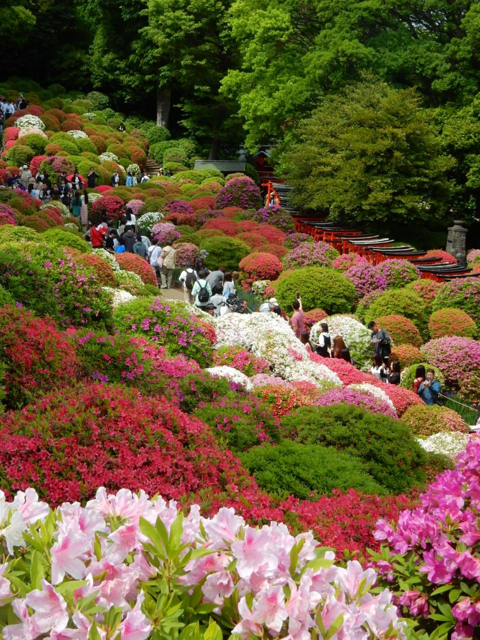 根津神社のつつじが見頃を迎えているとの、新聞の