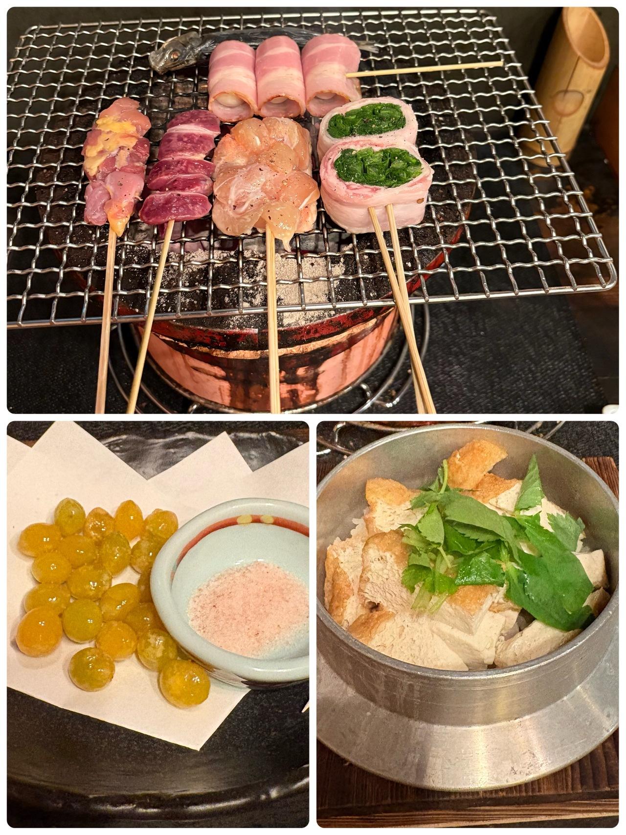 好きな焼き物を取ってテーブルの炭火で焼いていく炉端焼きのお店でした。