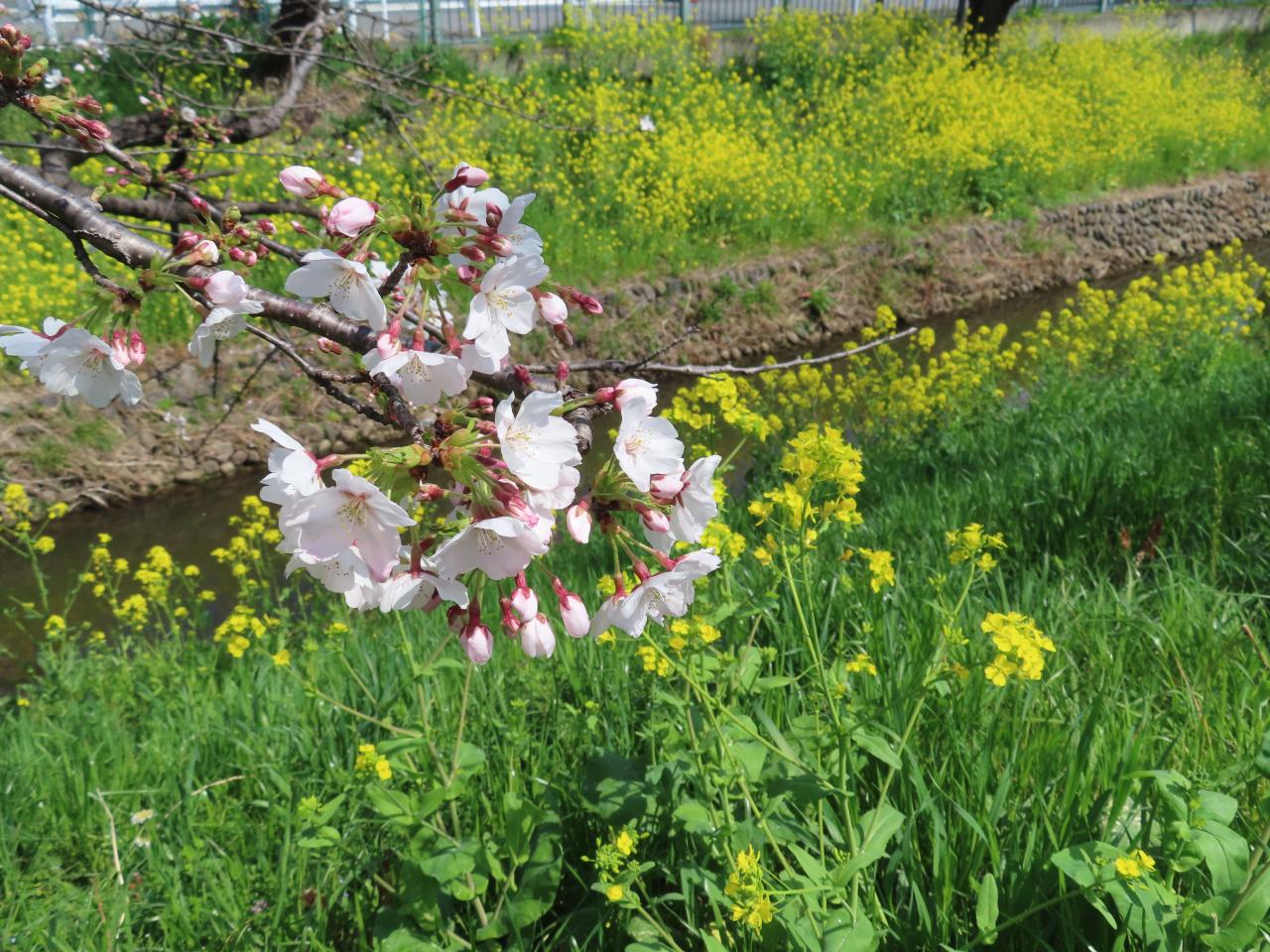 菜の花は咲き誇っていますが、桜は1週間くらい早かったかな?