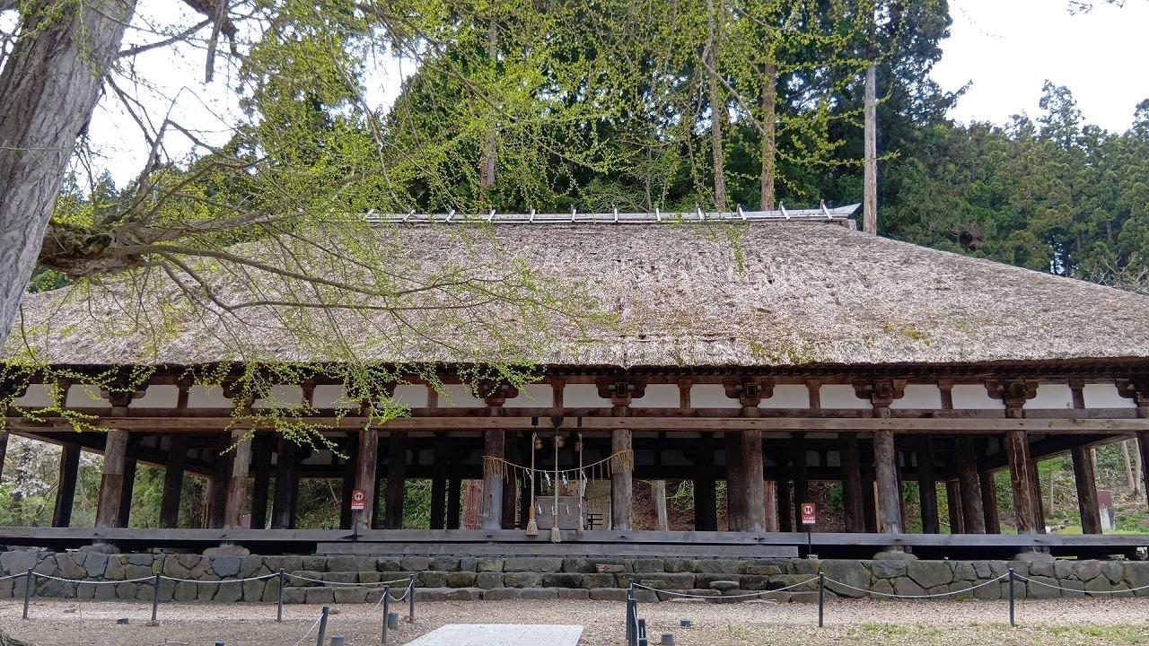① 郡山から車で喜多方へ向かう 熊野神社の長床でのんびりして
