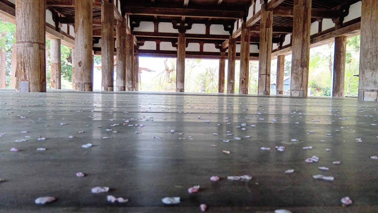 桜吹雪が床に散ってる