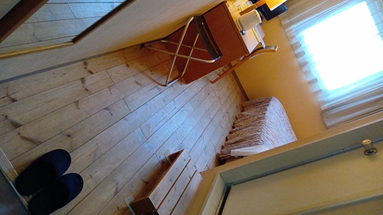 ビジネスホテルには珍しい床が木です