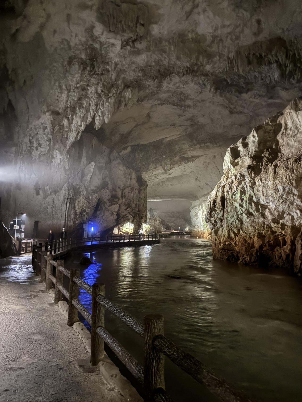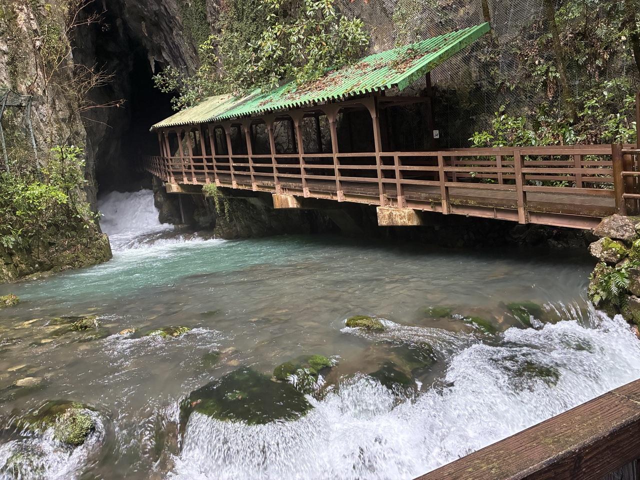 鍾乳洞の入り口、昨日からの雨で水量も多くすごい迫力