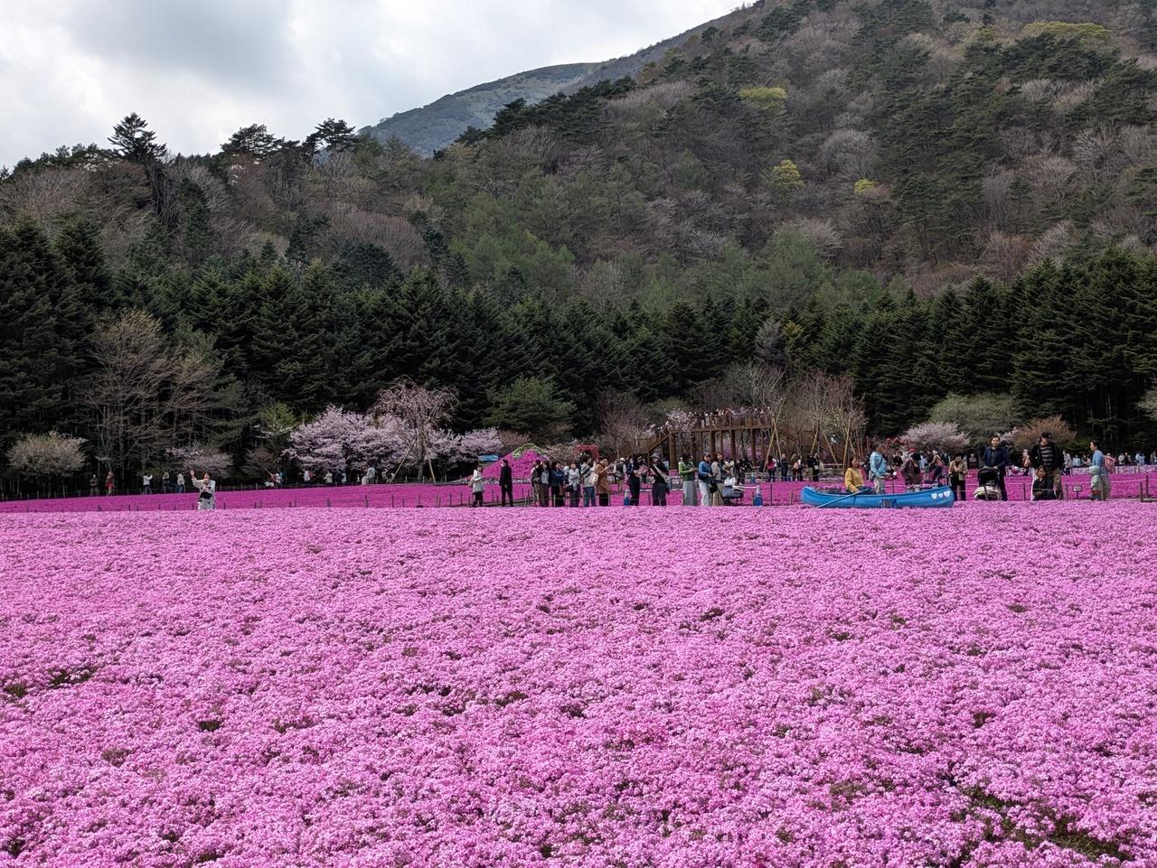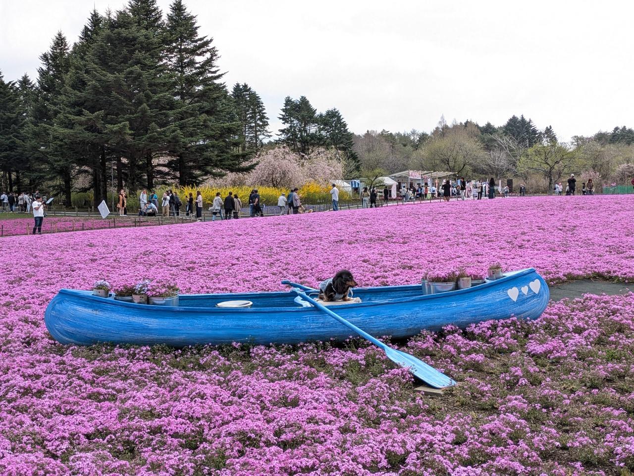 芝桜の海の上にボートが -