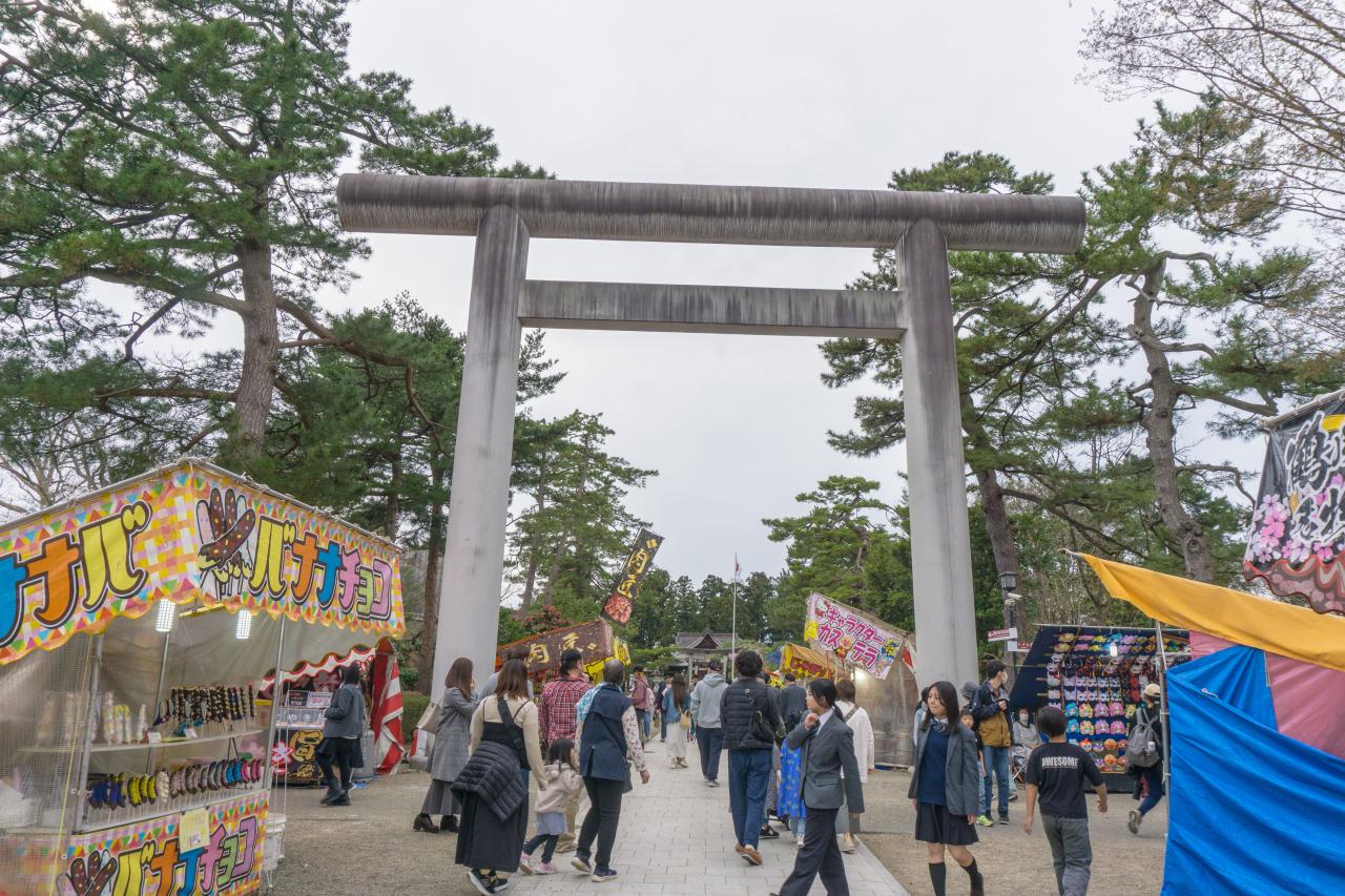 鶴岡公園に行くと、ちょうど桜祭りが行われてて、屋台がたくさん出ていて、人も多く、にぎわっていました。
