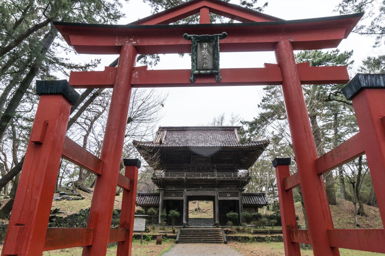 鶴岡公園内にある「荘内神社三の鳥居」。