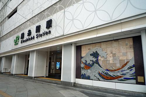 北斎の「神奈川沖浪裏」をモチーフにしたアートレリーフがありました。錦糸町駅 駅