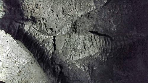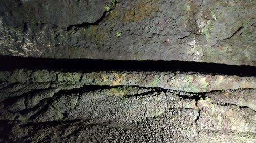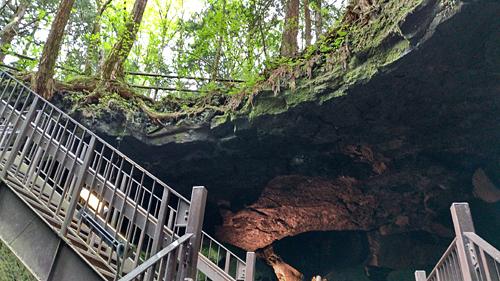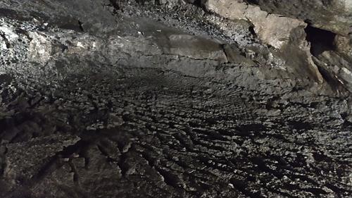 鍾乳石のように垂れ下がる途中で止まった溶岩は「溶岩鍾乳石」というそうです。