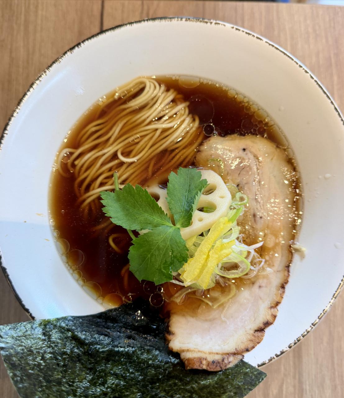 すっきりとしたチャーシューにネギ、三つ葉、海苔、レンコンに加えて柚子