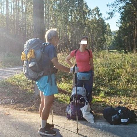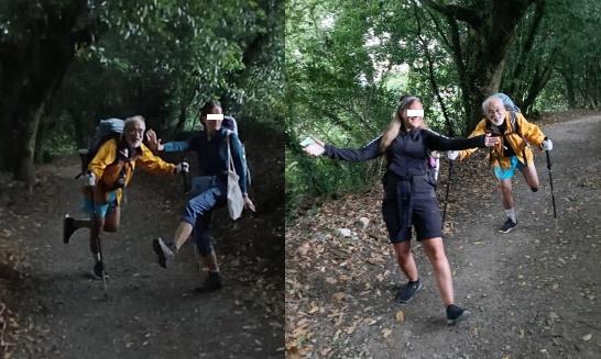 木々に囲まれたカミーノで何を思ったのか面白ポーズの撮影大会になりました。面白がって何枚も撮るのでポーズを取ってるのが疲れます。でもお陰で楽しい写真が撮れました。中々ノリの良い二人です。
