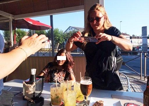 左のクラウディアの見た目は堅いイメージの女性だが最初に出会った時から楽しい人なのが分かってました。右のモナも面白いのがすぐ分かったので、こちらもふざけるのに遠慮はいらなかったです。酒飲んだりふざけたりするのに言葉は必要ないです。