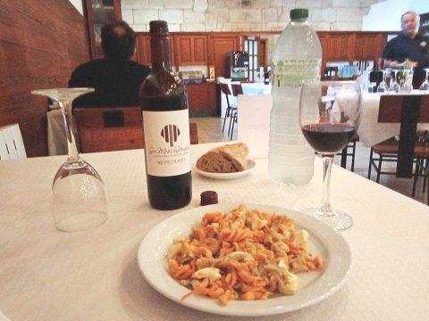 1皿目はパスタ。結構な量があるので前菜という感じがしないですが出た物はすべて完食します。