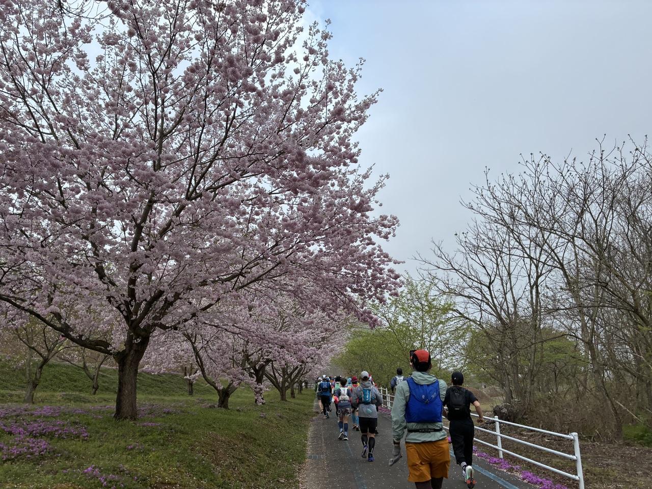 最初はひたすら河川敷沿いを走ります。ちょうど桜が見頃になっていました。