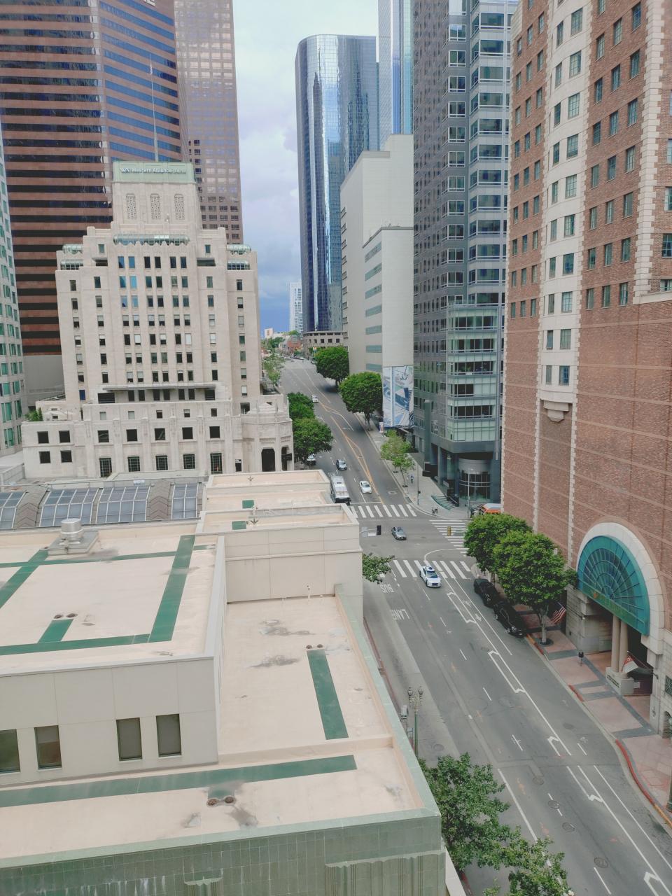 室内から見た South Grand Avenue。早めに付いたので、スタジアムの開場が17:10なので、それまでに二日分の朝食を調達しようと、徒歩10分程度のWholefoods'まで行き、バナナ4本、6個入りベーグル、ヨーグルト2個、グリーンスムージー、レモネード、水のボトルを購入。ホテルの前にDalians Cafe、スタバもあり、これらの店でも調達可能。