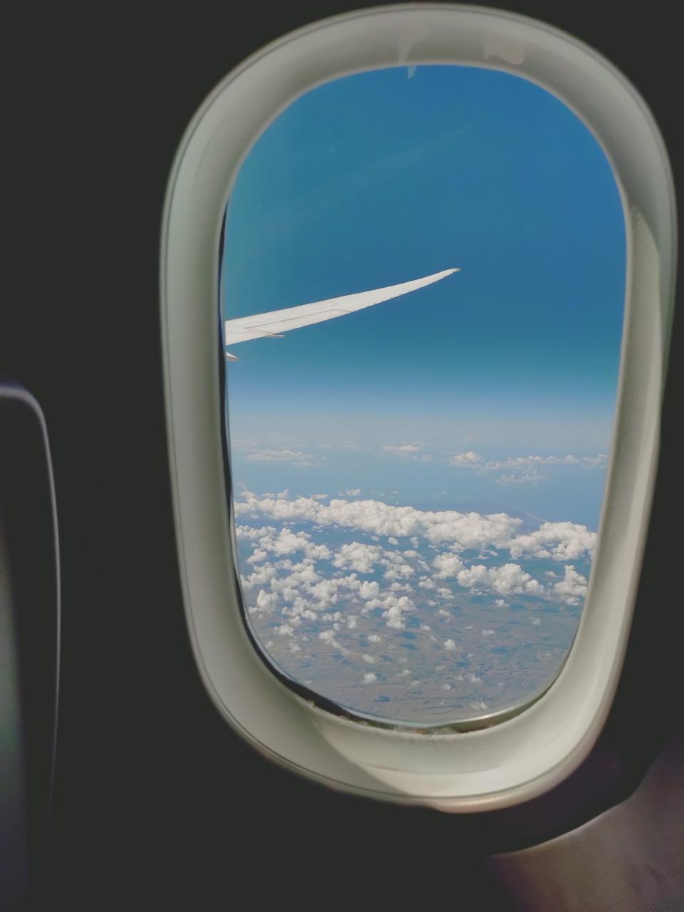機体はほぼ定刻に扉を閉め、動き出したけど、羽田空港特有の出発待ち渋滞があり。テイクオフまでには30分ほどかかった。ただ、到着は予定よりやや早い予定。