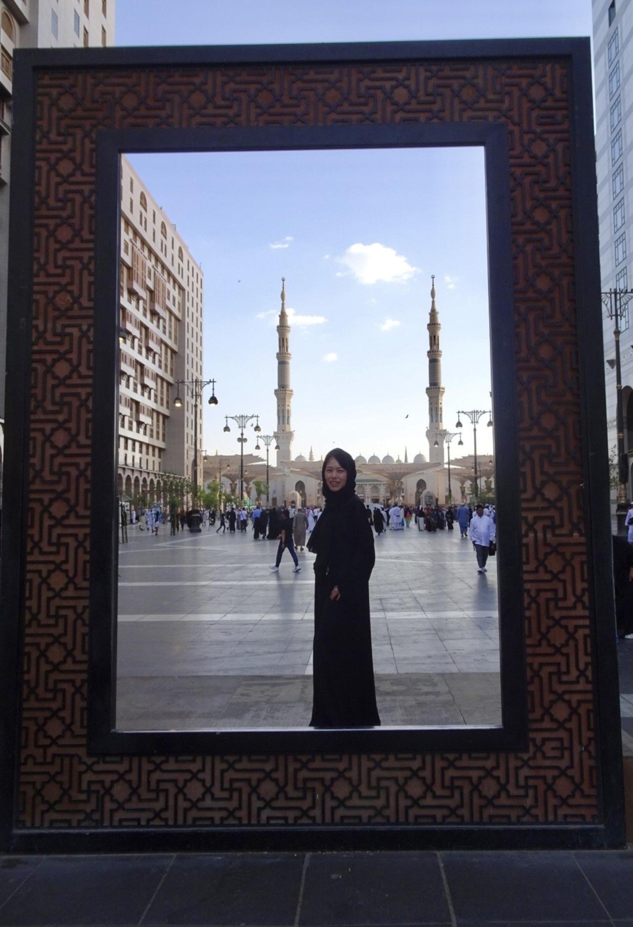 コスプレして、さあ!この旅のメインイベント、預言者のモスクへ行きましょう。