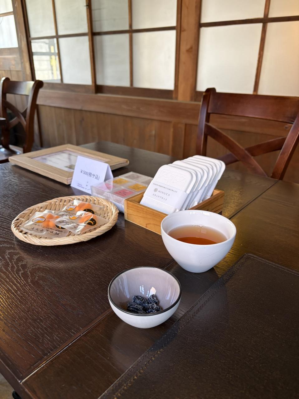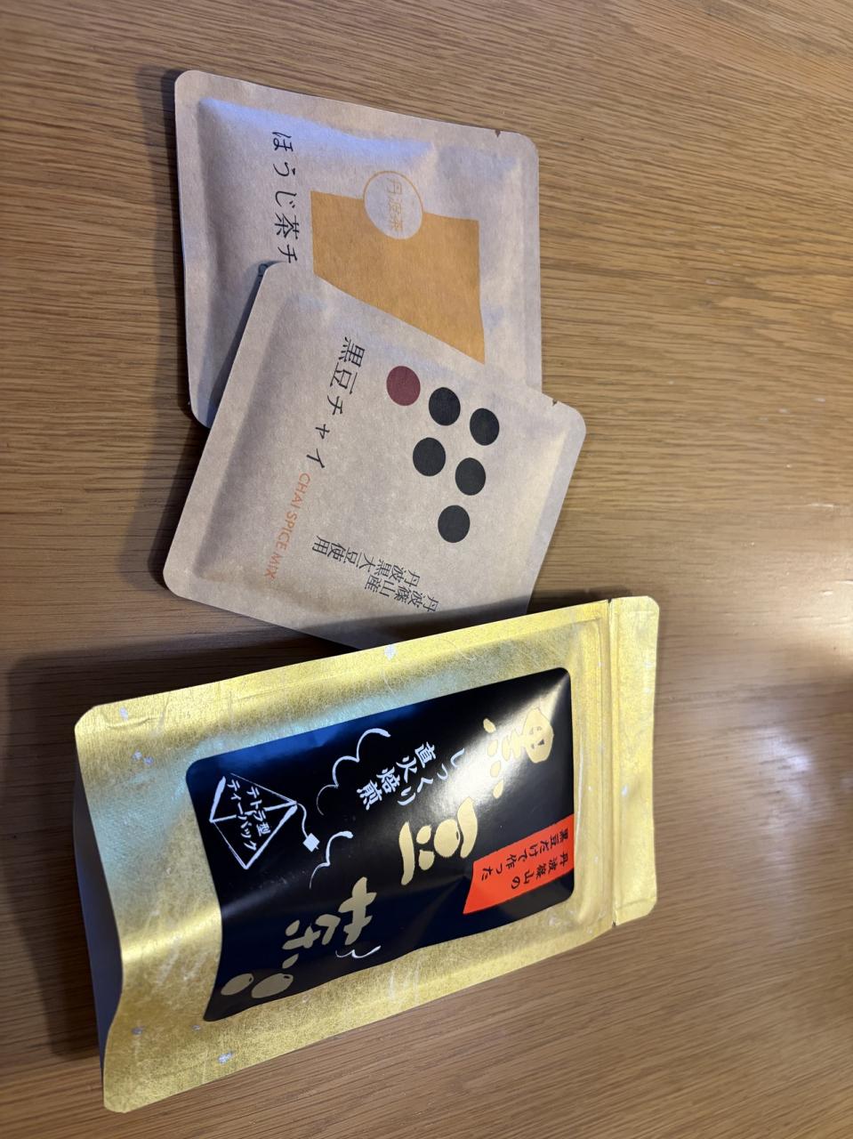 黒豆茶、黒豆チャイ、ほうじ茶チャイ。大正ロマン館には色んなお土産があって黒豆ソフトが有名だったけど、結局食べるタイミングがなかった。